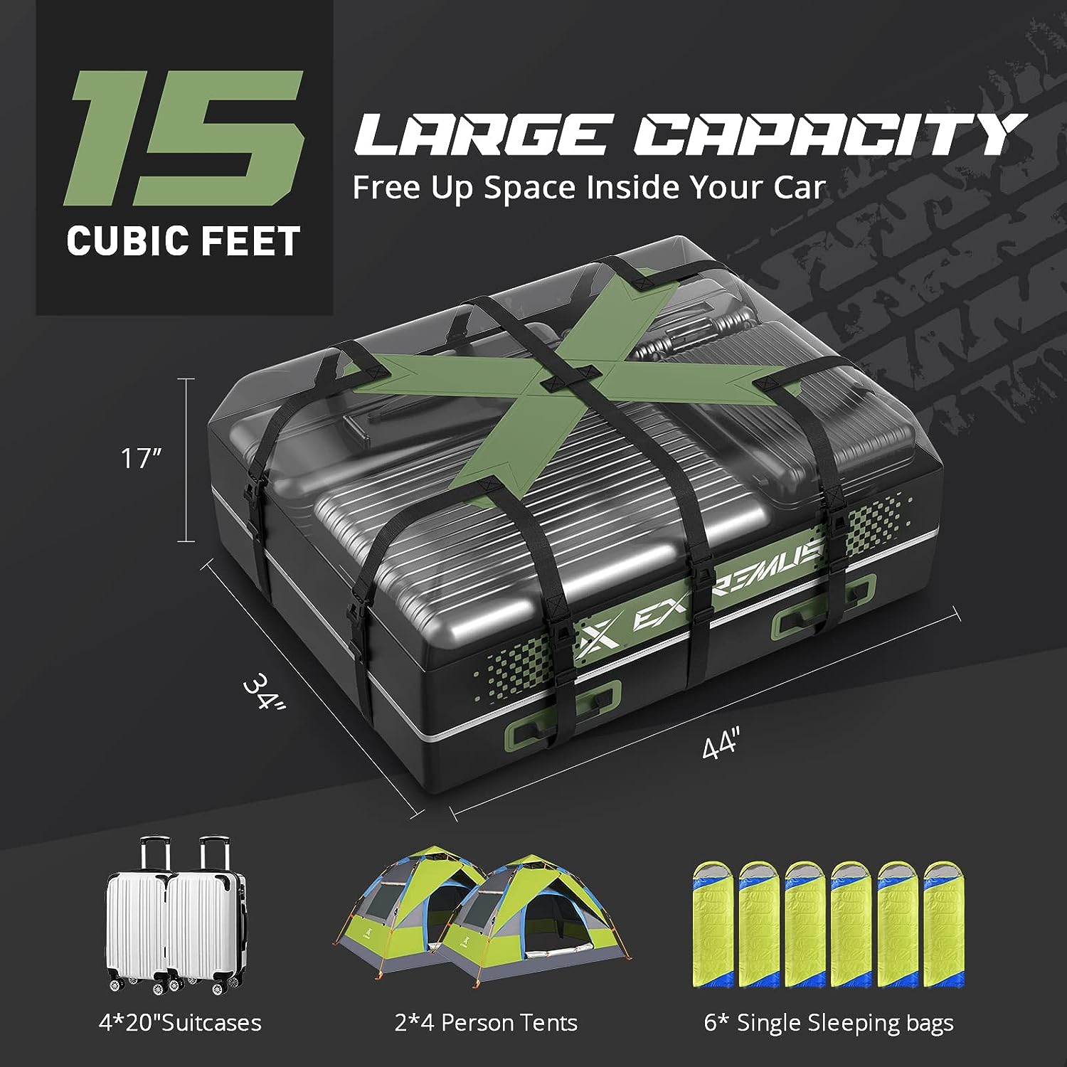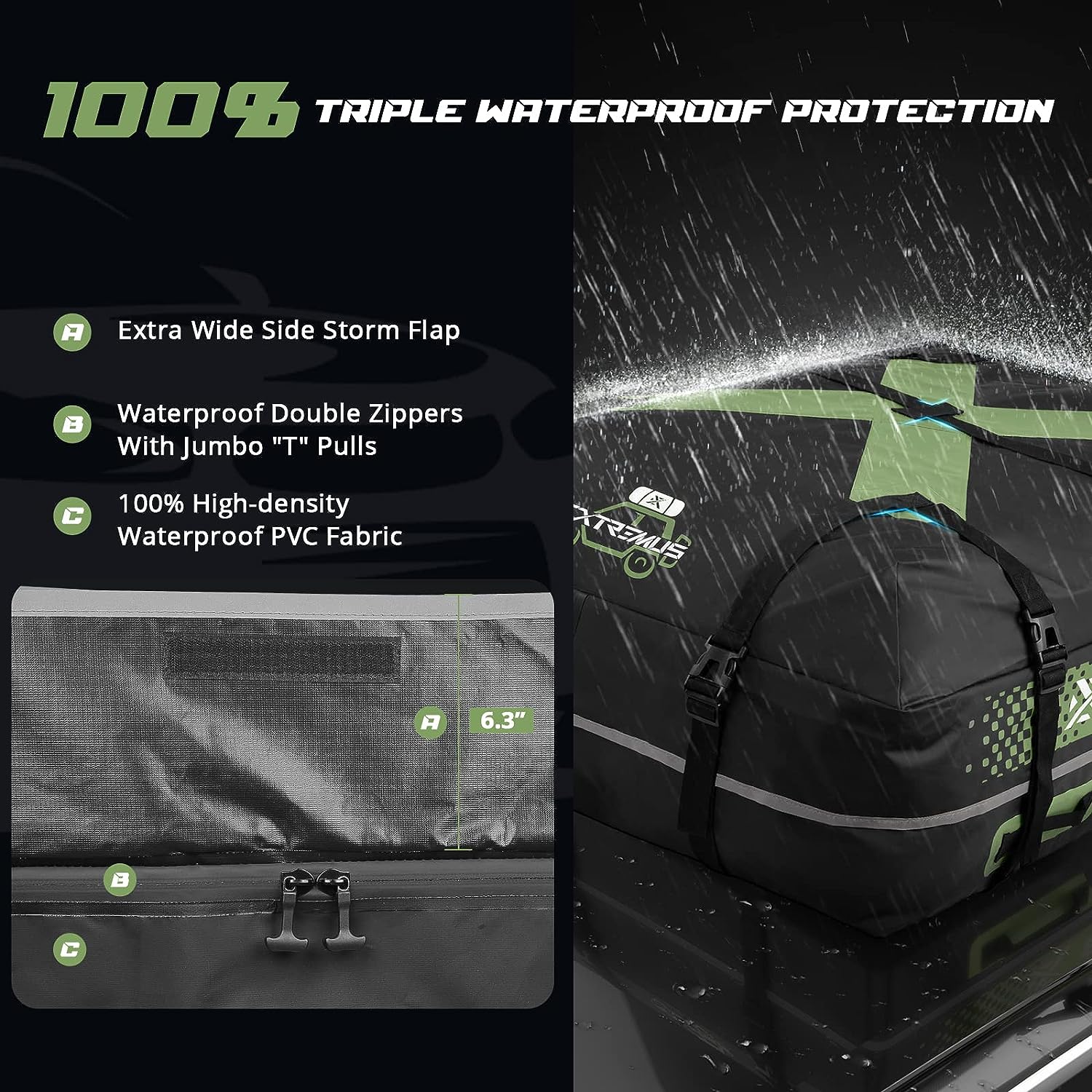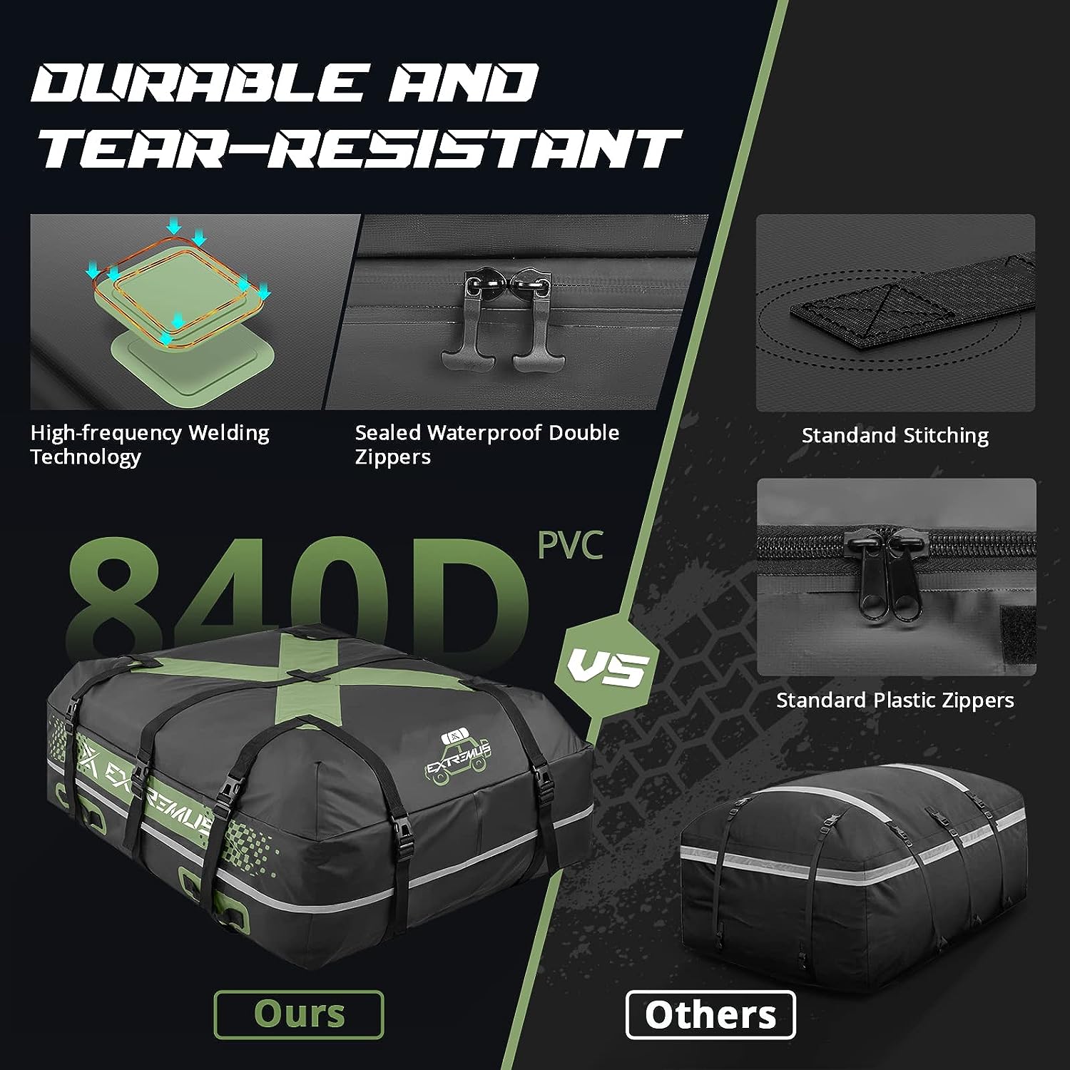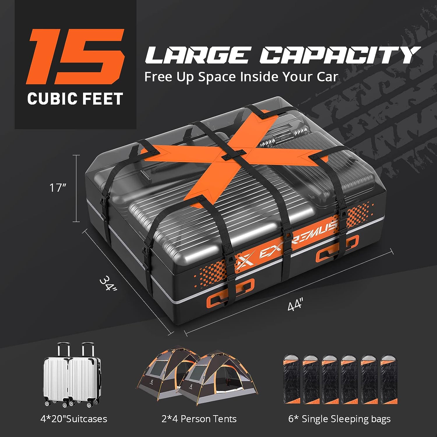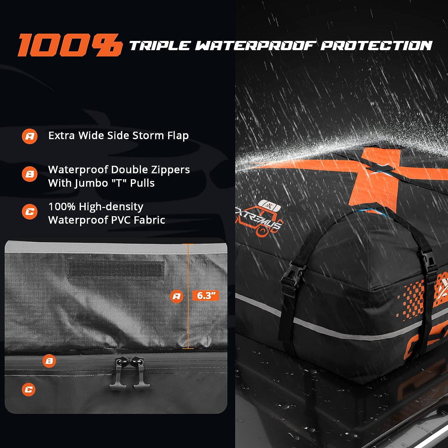 Extremus ExplorationX Rooftop Cargo Carrier Bag-15 Cu Ft, 100% Waterproof Car Top Carrier, Abrasion Resistant 840D PVC, High-Frequency Welded Seams, Waterproof Zipper W/Storm Flap & 9 Sturdy Straps