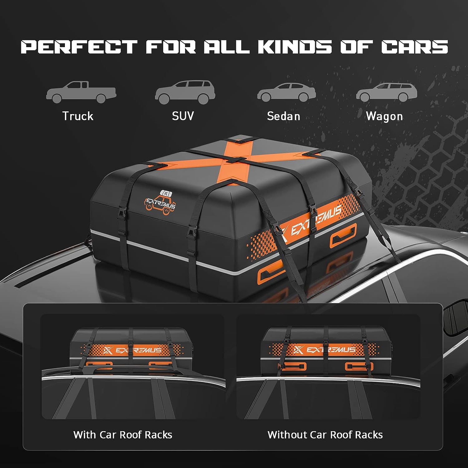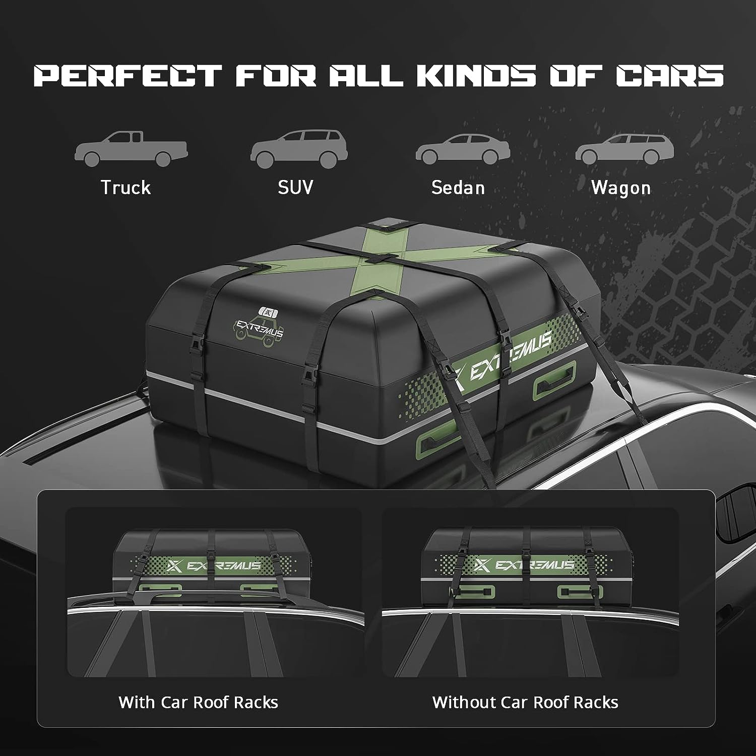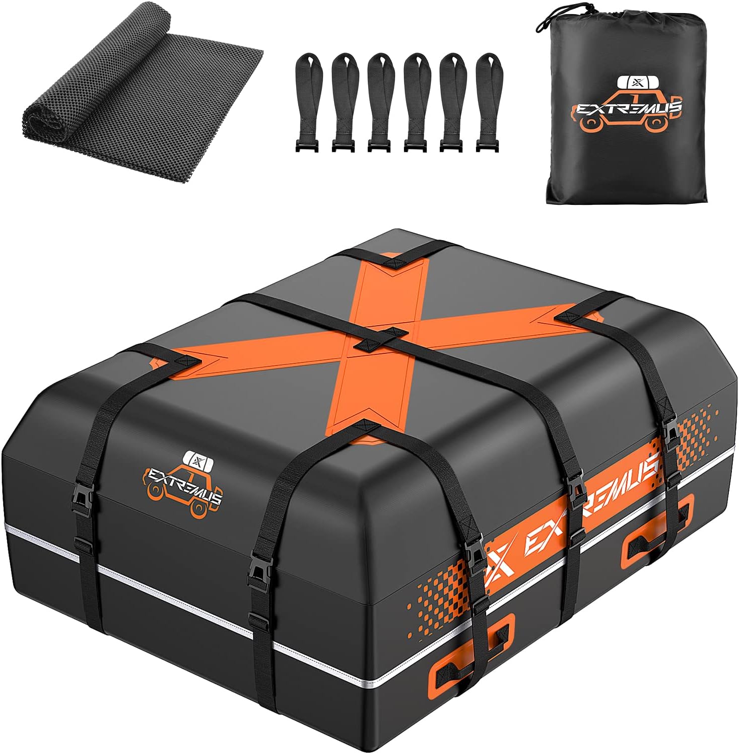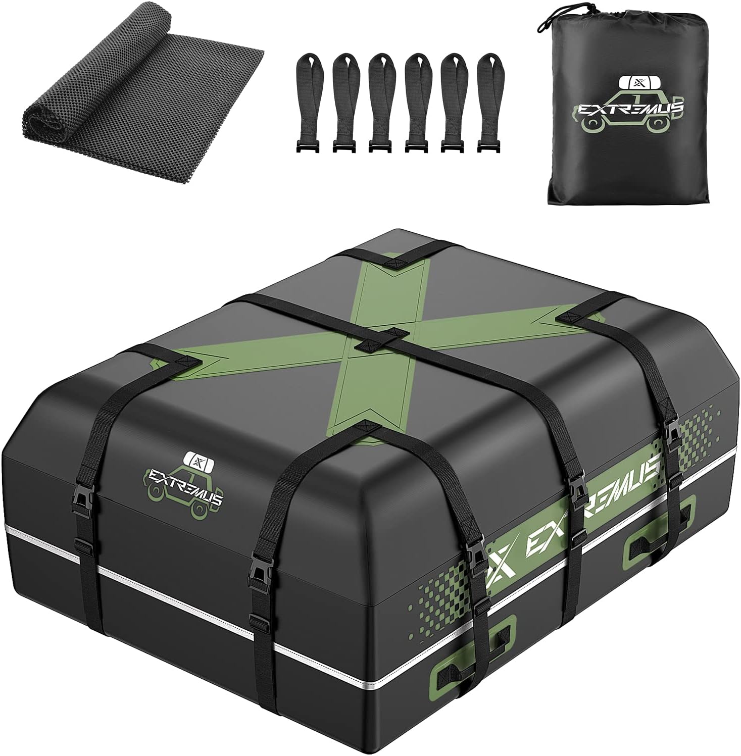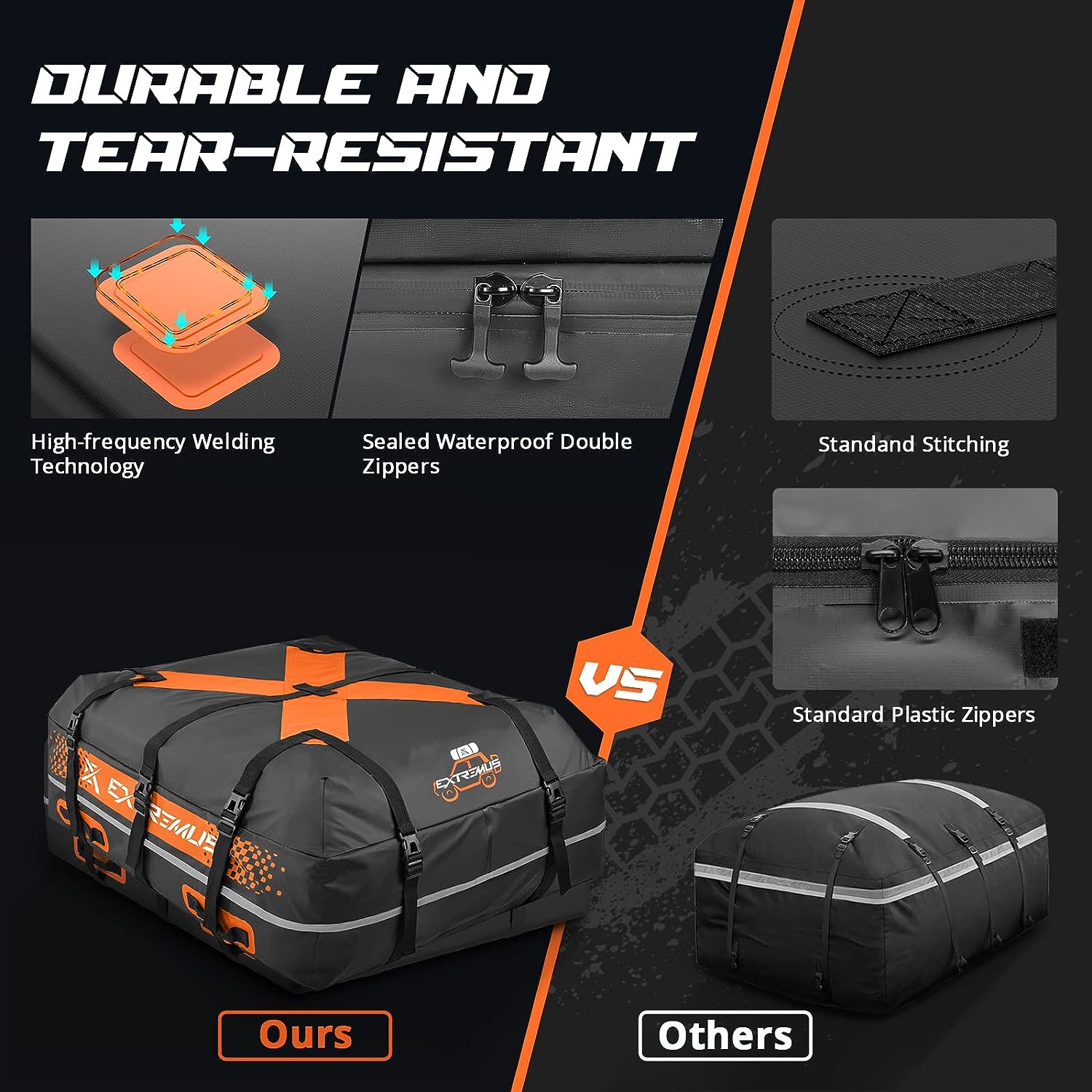 Extremus ExplorationX Rooftop Cargo Carrier Bag-15 Cu Ft, 100% Waterproof Car Top Carrier, Abrasion Resistant 840D PVC, High-Frequency Welded Seams, Waterproof Zipper W/Storm Flap & 9 Sturdy Straps