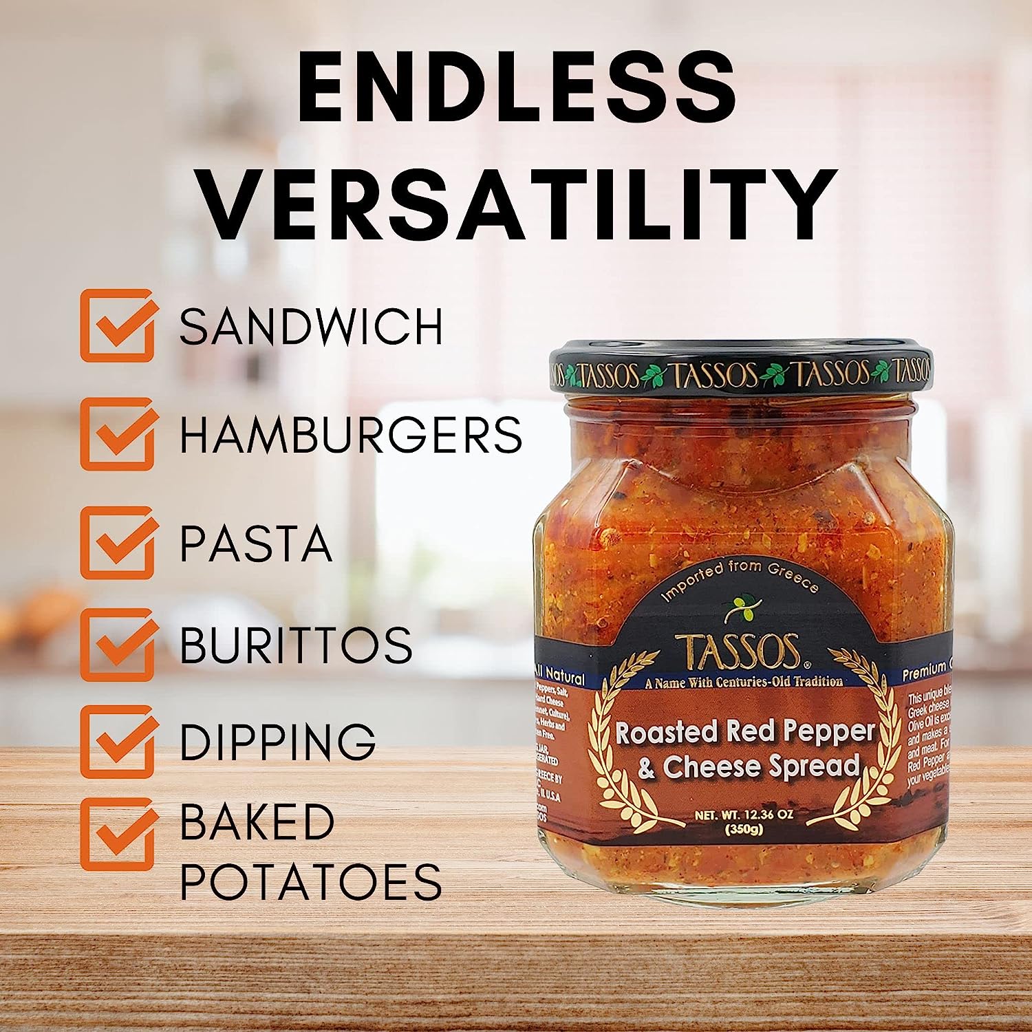 Do you love sandwiches? How about pasta or a unique dip? If so, get ready to fall in love with Tassos Roasted Red Pepper and Cheese Spread! It will surely be a hit for your favorite dishes or as a unique condiment for your charcuterie boards!