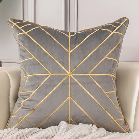 Aeckself 20 x 20 Inch Grey Striped Geometric Lines Embroidery Velvet Cushion Case Luxury Modern Square Throw Pillow Cover Decorative Pillow for Couch Living Room Bedroom Car
