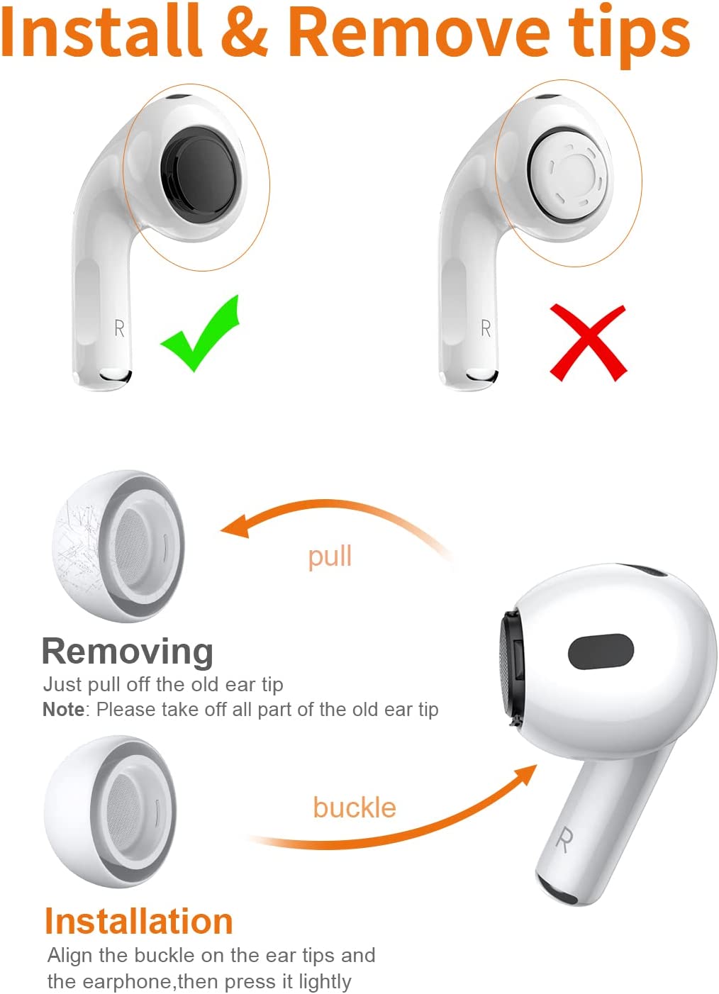 • ✔ MATERIAL - The ear tips are made of high-quality silicone material, which block outside noise and doesn’t affect the original sound quality of your AirPods Pro in-ear headphones.