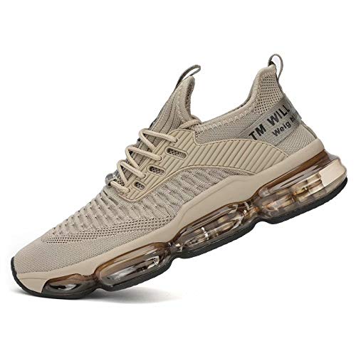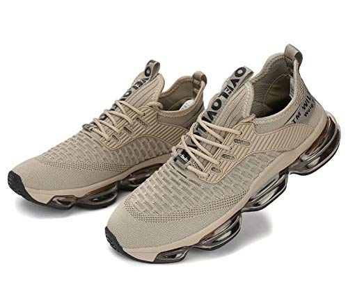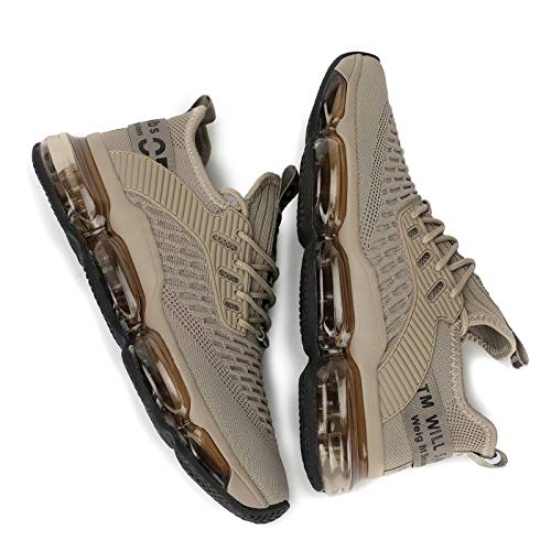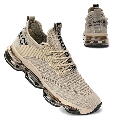 Kapsen Mens Running Shoes Air Cushion Tennis Walking Sneakers Casual Sport Gym Jogging Beige 9.5