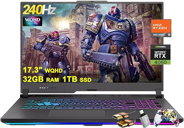 ASUS ROG Strix G17 G713 Gaming Laptop 17.3" WQHD IPS 240Hz AMD 12-Core Ryzen 9 7845HX (>i9-12900H) 32GB RAM 1TB SSD GeForce RTX 4060 8GB USB-C RGB Backlit Fast Charging Win11 w/ICP Accessory