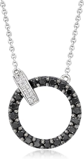 Ross-Simons 1.60 ct. t.w. Black Spinel and .10 ct. t.w. Diamond Circle Clasp Necklace in Sterling Silver. 18 inches