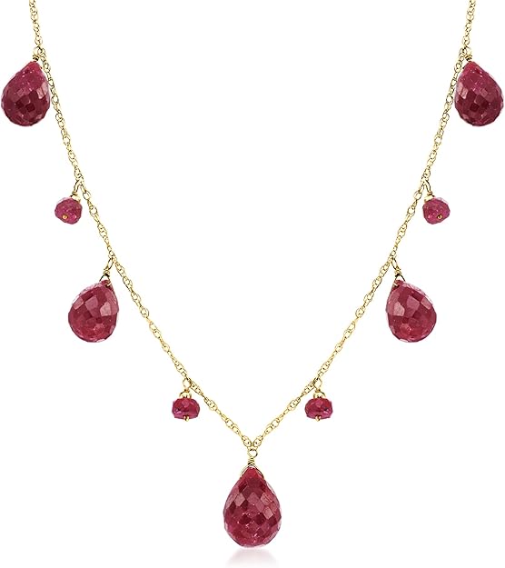 Ross-Simons 33.90 ct. t.w. Ruby Drop Necklace in 14kt Yellow Gold