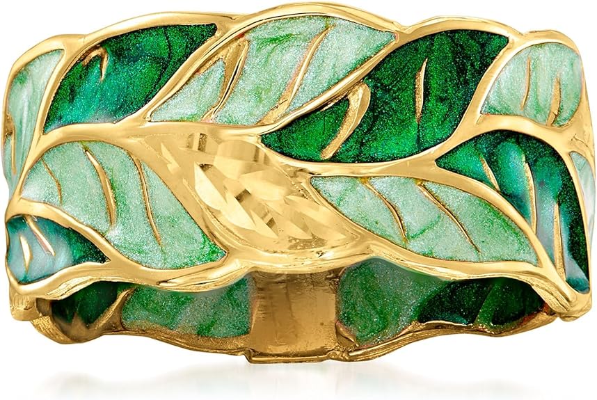 Ross-Simons Italian Green Enamel Leaf Ring in 14kt Yellow Gold