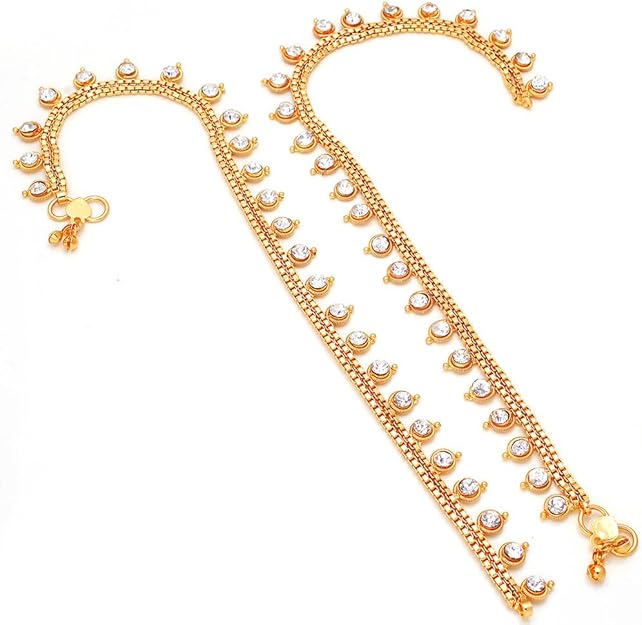 Anklet pair Payal Indian Traditional Cz Ad Handmade Natural Gold Plated Jewelry 8392