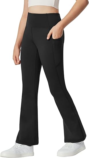 Ewedoos Girl_Ñés Fleece Lined Flare Leggings with Pockets Cute Preppy Clothes for Girls Yoga Pants Bell Bottoms