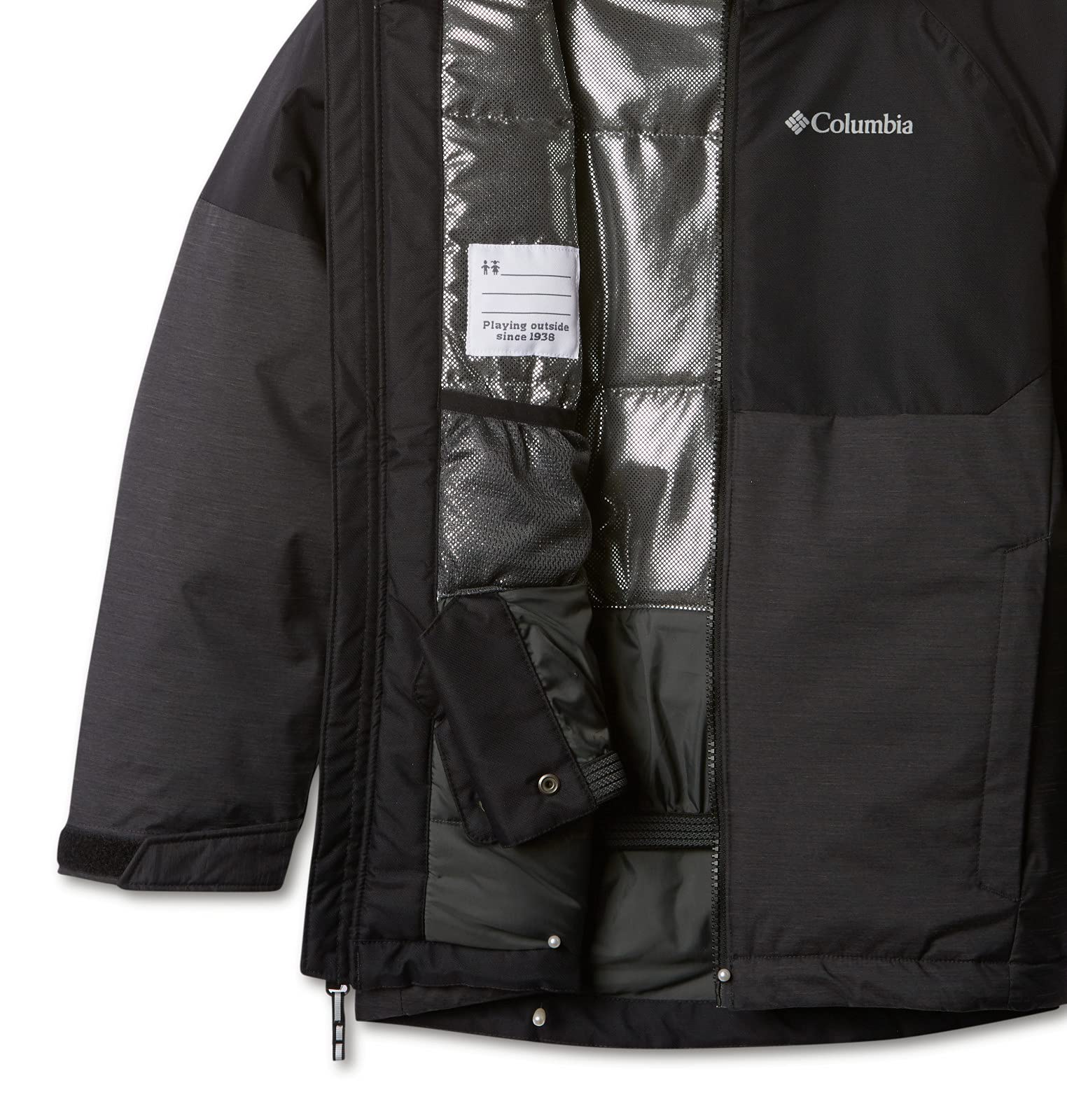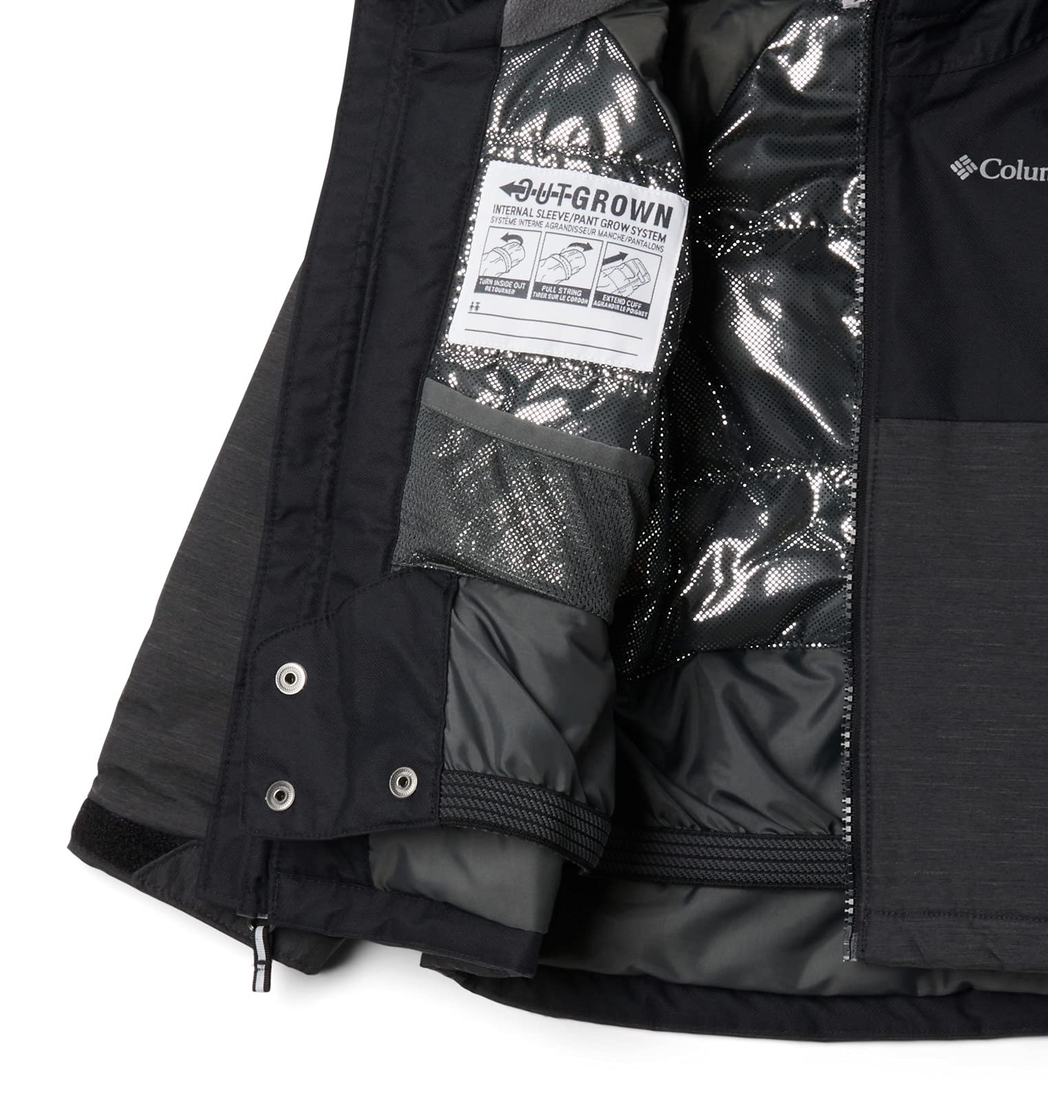 Details: This ski jacket offers a collection of features for cold-weather lovers, including a waterproof exterior that keeps moisture out, a fleece-lined hood, a thermal-reflective lining to bounce back warmth, and the ability to extend the cuffs to accommodate growth over multiple seasons. Additional features include silicone grippers on the powder skirt, ski pass pocket, media and goggle pocket, zippered hand pockets, adjustable cuffs, a drop tail, and a touch of reflective detail. Columbia offers this youth-sized jacket in multiple colors and sizes. Regular Fit. To ensure the size you choose is right, utilize our sizing chart and the following measurement instructions: For the sleeves, start at the center back of your neck and measure across the shoulder and down to the sleeve. If you come up with a partial number, round up to the next even number. For the chest, measure at the fullest part of the chest, under the armpits, and over the shoulder blades, keeping the tape measure firm and level.