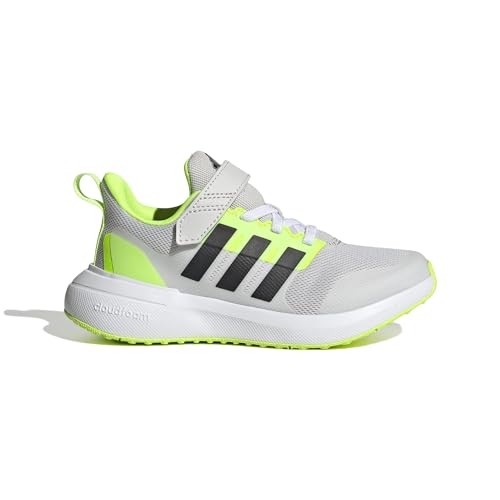 adidas Fortarun 2.0 Elastic Lace Sneaker, Grey One/Core Black/Lucid Lemon, 5.5 US Unisex Big Kid
