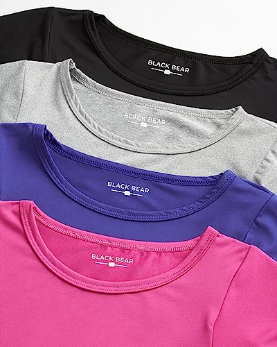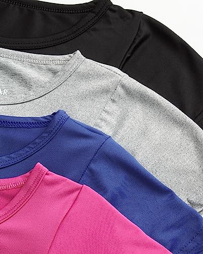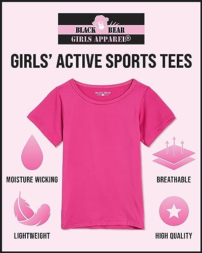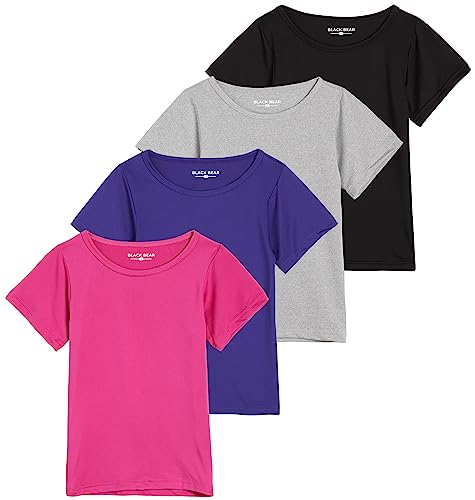 Black Bear Girls’ Athletic T-Shirt – 4 Pack Active Performance Dry-Fit Sports Tee (4-18), Size 12-14, Black/Grey/Blue/Fuchsia
