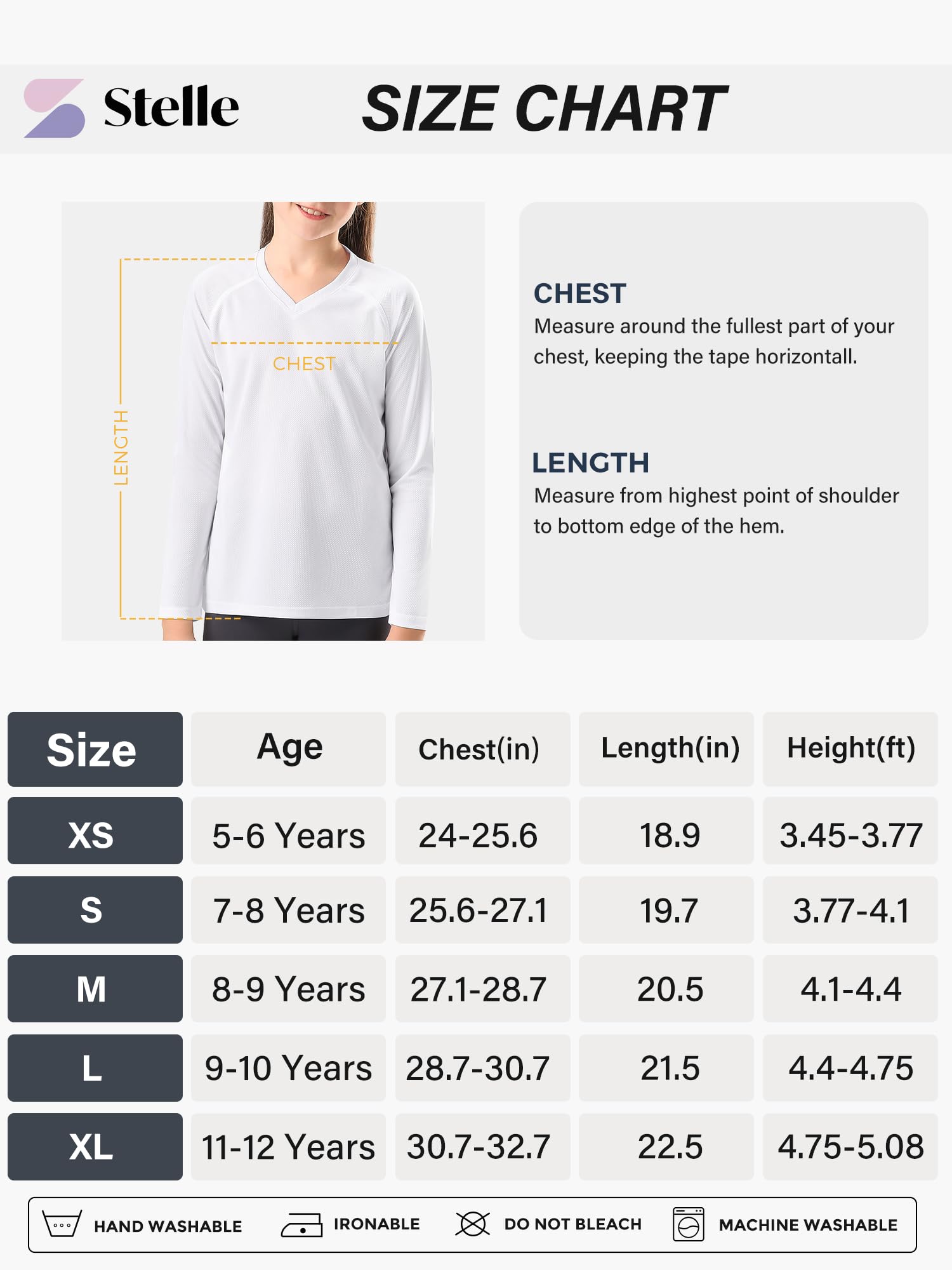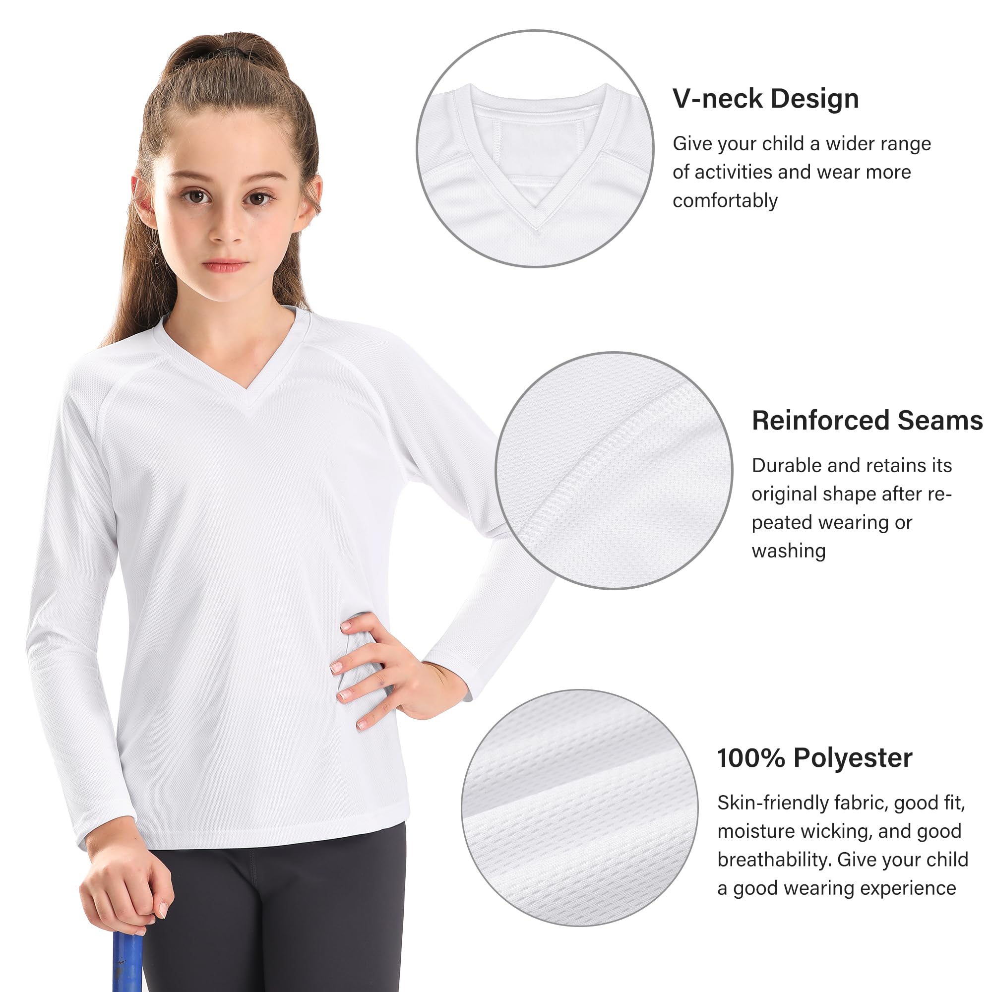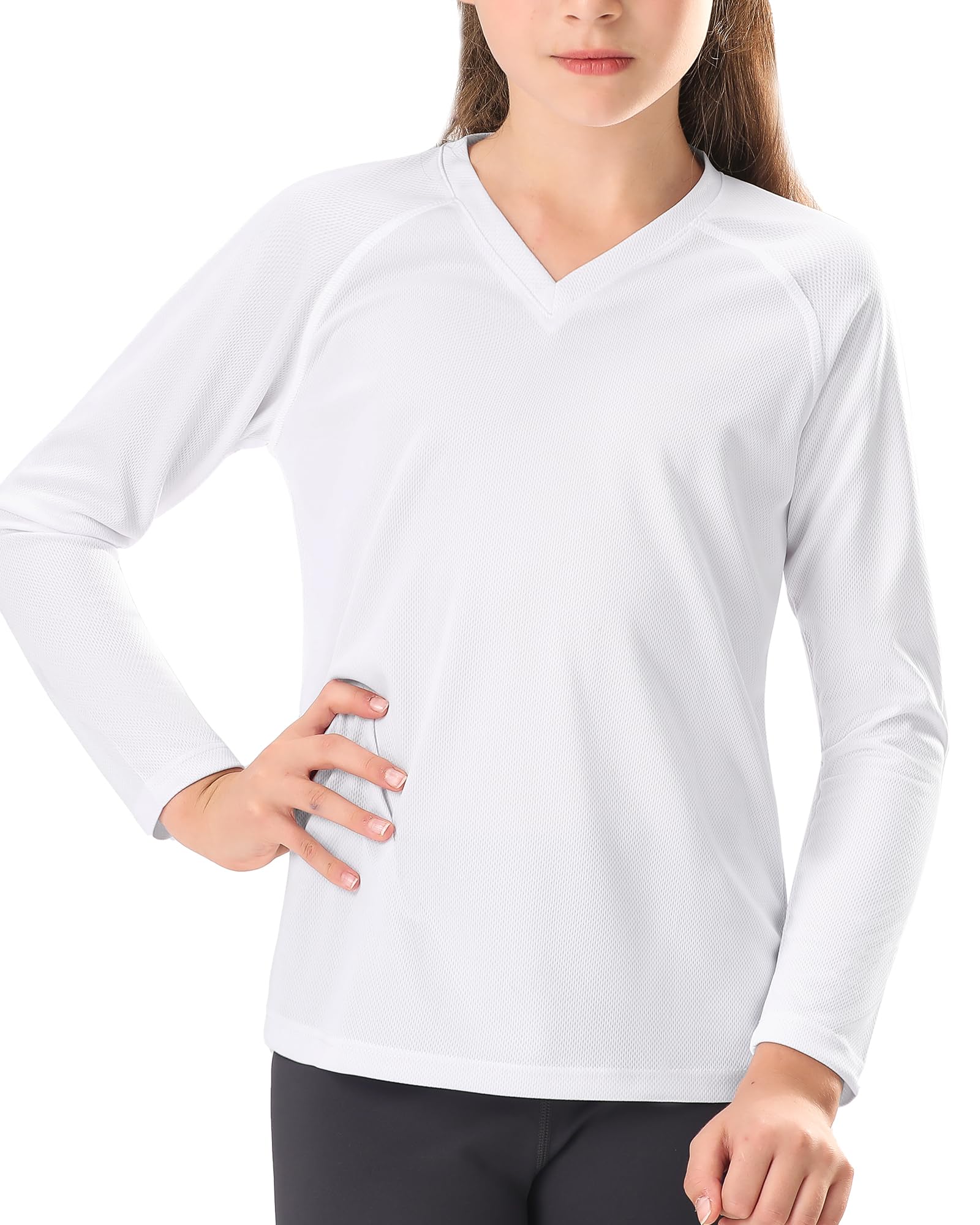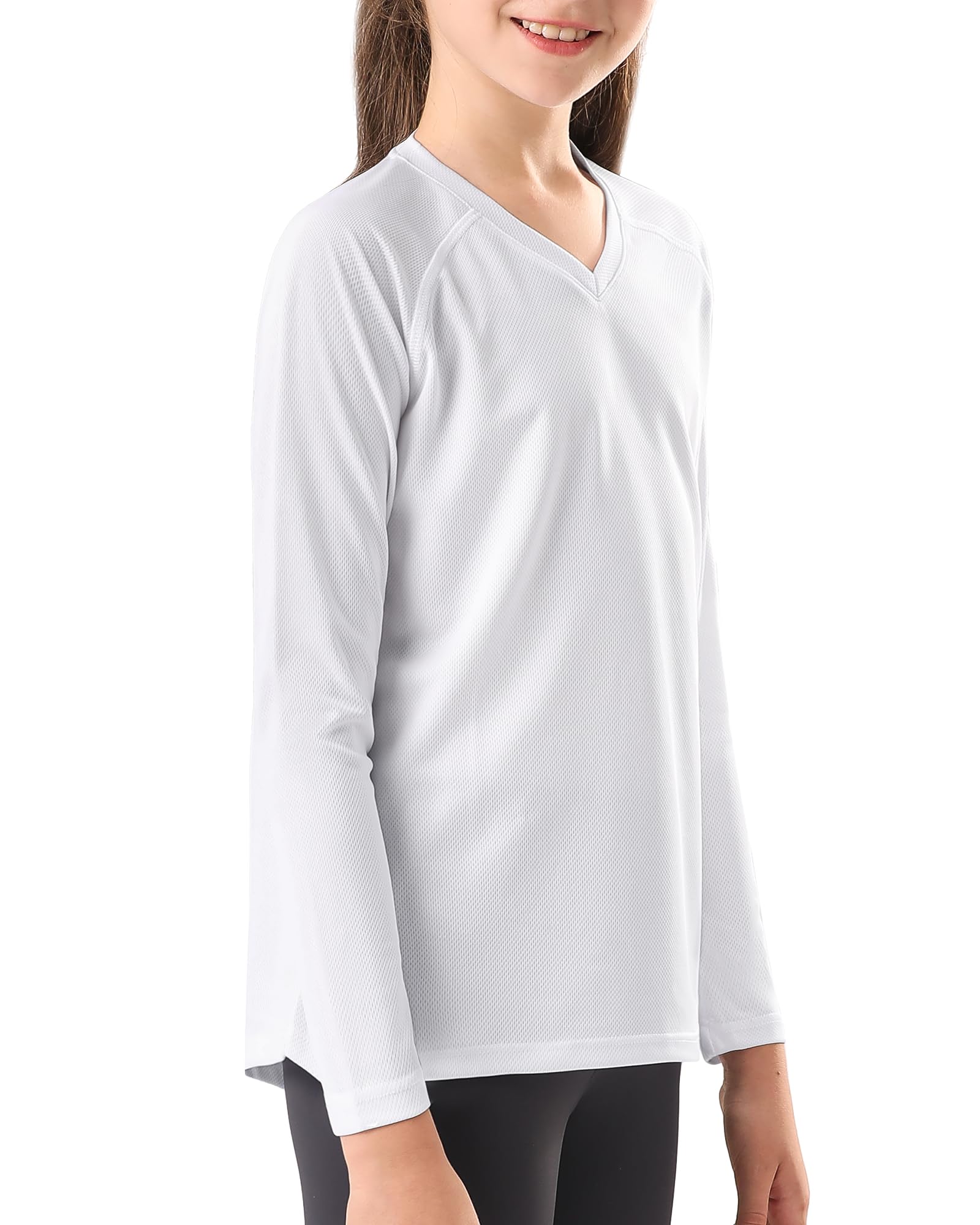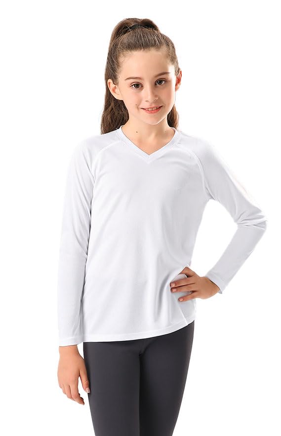 Stelle Youth Girls Athletic Performance Long Sleeve Shirts V Neck Moisture Wicking Base Layer Undershirt(White,M)