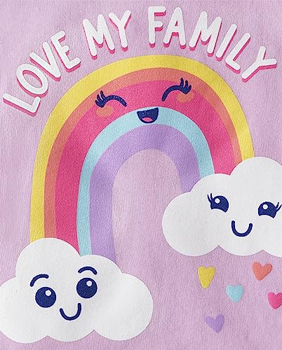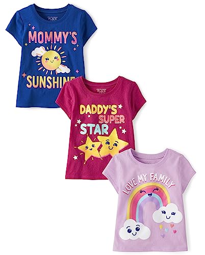 • MULTIPACK — 3-pack of graphic tees: 1 style with 'Love My Family' and rainbow graphic design at front; 1 style with 'Mommy's Sunshine' and sun graphic design at front; 1 style with 'Daddy's Super Star' and stars graphic design at front