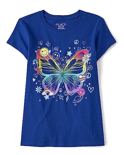 The Children's Place Girls' Short Sleeve Animal Graphic T-Shirt, Navy Butterfly, Medium