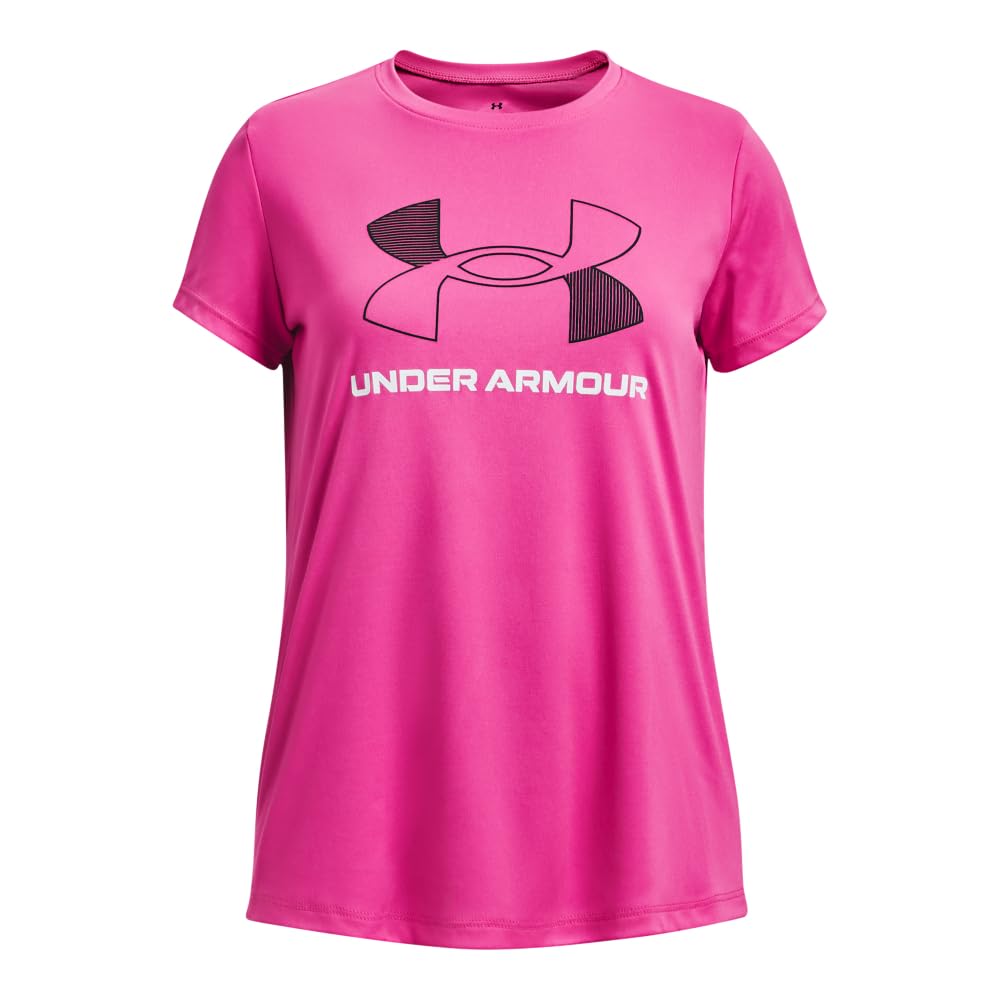 Under Armour Girls' Standard Tech Big Logo Short Sleeve T Shirt, (652) Rebel Pink / / Black, X-Small