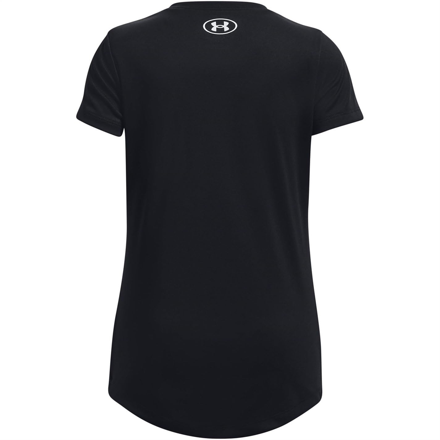 Under Armour Girls' Tech Print Big Logo Short Sleeve Crew, (002) Black/Cerise/White, Large