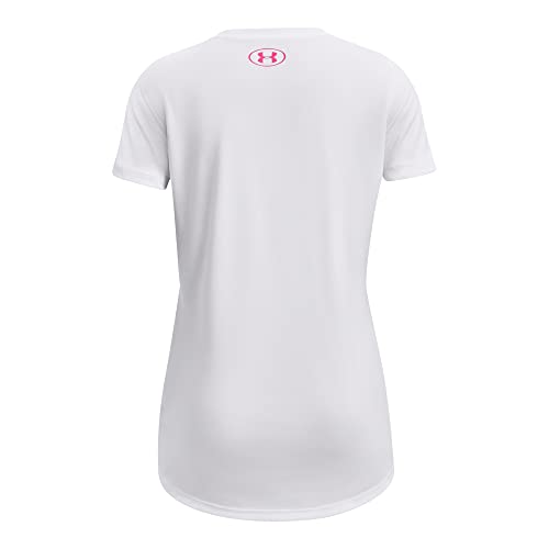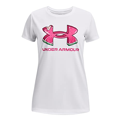 Under Armour Girls' Tech Solid Sportstyle Short-Sleeve Crew Neck T-Shirt , White (100)/Cruise Blue , Youth X-Large