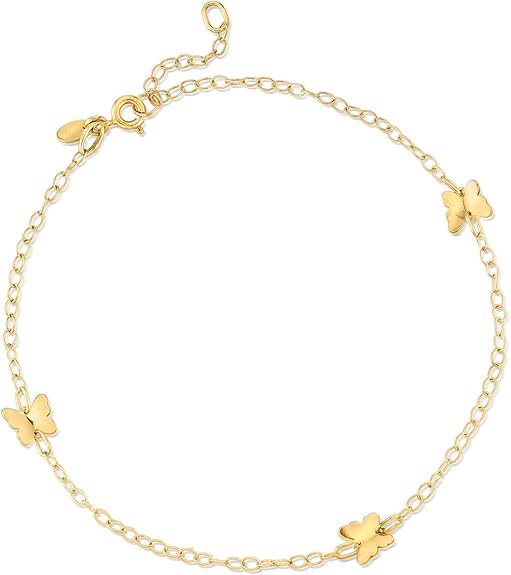 Ross-Simons Italian 14kt Yellow Gold Butterfly Station Anklet. 9 inches