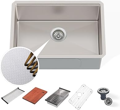 Kitchen Workstation Sink 28" x 19, 3D Embossed Undermount Sink, 10" Deep Basin Stainless Steel Sink, Scratch Resistant