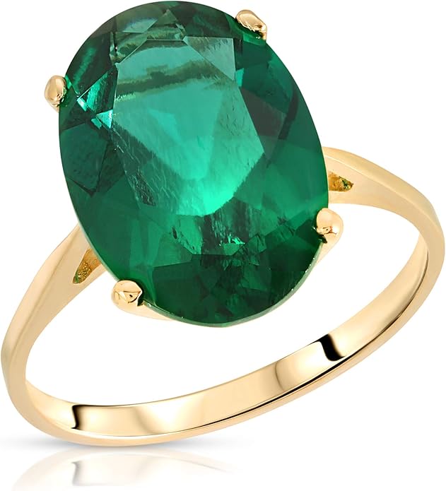 Galaxy Gold GG Stunning 4.50 Carats 14K Solid Yellow Gold Brilliant Oval Cut Emerald Solitaire Ring with Genuine Vibrant Emerald Oval Shape Anniversary Engagement Promise Her Him Unisex