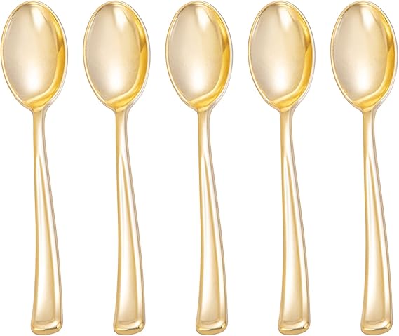 YOUBET 300pcs Gold Plastic Spoons - Heavyweight Plastic Spoons - Gold Plastic Silverware - 6.9 Inch Heavy Duty Disposable Spoons for Parties, Dinners & Weddings