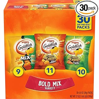Goldfish Bold Mix Variety Pack Snack Crackers, 1 oz Snack Packs, 30 Ct Box