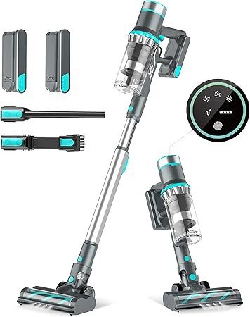 Belife BVC11 Cordless Vacuum Cleaner, 2 Detachable Battery, Max 80mins Runtime, 25Kpa 380W Brushless Stick Vacuum, Lightweight Vacuum for Home Hardwood Floor Carpet Pet Hair, LED Touch Display