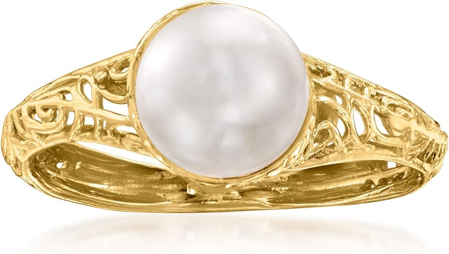 Ross-Simons Italian 8-8.5mm Cultured Pearl Lace Ring in 14kt Yellow Gold