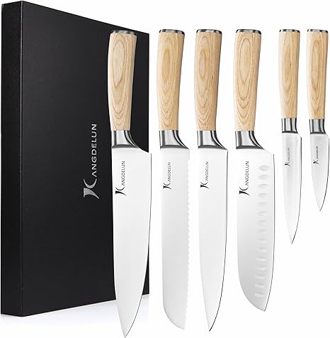 6 PCS Chef Knife Set with Gift Box, Ultra Sharp Kitchen Knives, Ergonomic Wood Handle