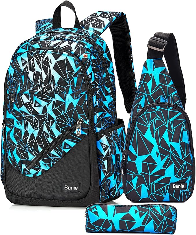 bunie School Backpack for Boys Large Bookbag Boys Backpacks Elementary Middle High School Bags Kids Cool Back Pack Children 7 8 9 10 11 12 13 14 15 16 Years Old (Blue)