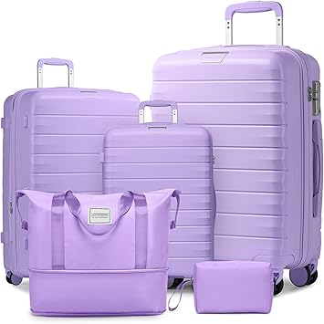 LARVENDER Luggage Sets 5 Piece with Duffel Bag Expandable(Only 28 inch) Hardside PP carry on luggage with 360ë� Spinner Wheels TSA Lock for Men Women, Purple