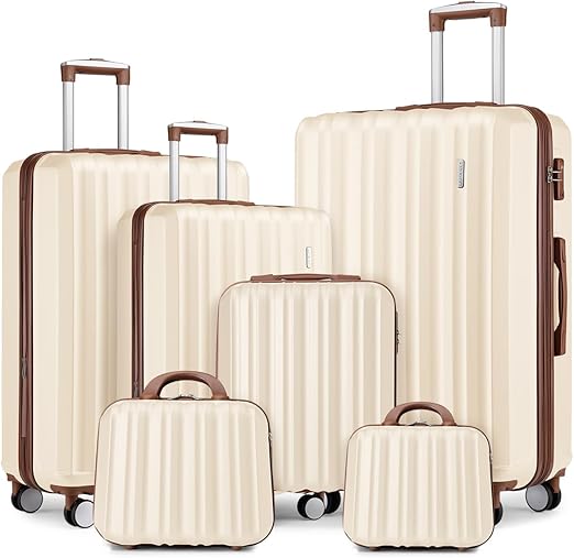 LARVENDER Luggage Sets 6 Piece, Expandable Hardside Suitcase Set Carry on Luggage with Spinner Wheels, Lightweight Travel Luggage Set with TSA Locks for Men and Women, Cream White