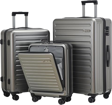 3Pcs (20/24/28) Luggage Set, HardShell Lightweight, Only 20" with Front Pocket, 21.65*15.35*7.87" Fits Overhead Cabin, 24" (26*17.7*10.2") and 28" (19.68*11.81*29.92") Checked Luggage, Gray