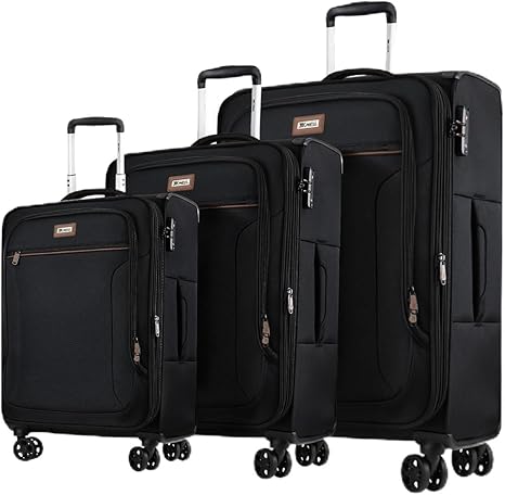 3Pcs Black Luggage Sets, Softside Expandable Lightweight Durable Suitcase Sets w/TSA Lock & Double Spinner Wheels(20in/28in/30in)