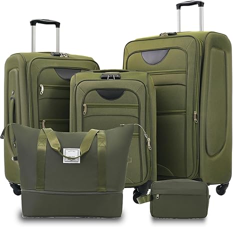 Anwick Expandable Suitcase Set 5 Piece, Softside Luggage Suitcases Set with Spinner Wheels TSA Lock, Lightweight Travel Luggage Set for Men Women 20" 24" 28" (Army Green)