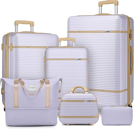 LARVENDER Luggage Sets 6 Piece with Duffel Bag, Expandable(Only 28 & 24") Hardside Luggage with Cosmetic Case 360ŒÁ Spinner Wheels, Durable Luggage Set Clearance For Women Men, Lavender