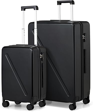 MILADA 2 Piece Luggage Sets With Spinner Wheels, Travel Luggage TSA Approved Hard Shell Luggage Sets, 20 Inch Carry On Suitcase 28 Inch Large Luggage For Women Men, Black