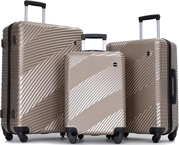 Travelhouse Luggage Sets, Expandable Hardside Suitcases 24in/28in, Carry on 20in, 3 Piece Set Travel Luggages Clearance with Double Spinner Wheels TSA Lock Lightweight (GOLD)