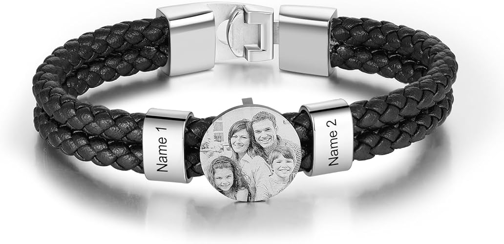kaululu Personalized Photo Bracelet Custom Picture Name Father's Day Braided Bracelet Gifts from Daughter Son Wife for Men Dad Husband