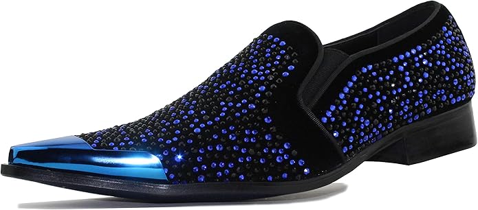 Bolano x Amali Dezzy - Men's Dress Shoes, Sparkling Loafers for Men - Rhinestones, Crystals, Metallic Tip Smoking Slippers - The Original, Designer Shoes - Size UP