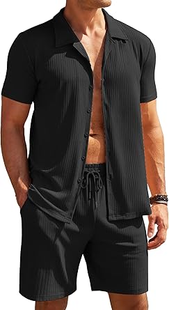 COOFANDY Men's 2 Pieces Short Sets Short Sleeve Casual Button Down Shirt Sets Summer Beach Outfits