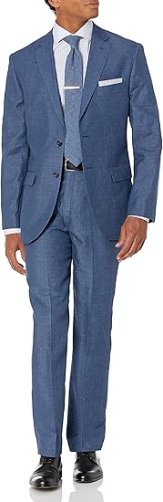 Kitoner Men's Slim Fit Solid Textured Linen Denim 2pc Suitsuit
