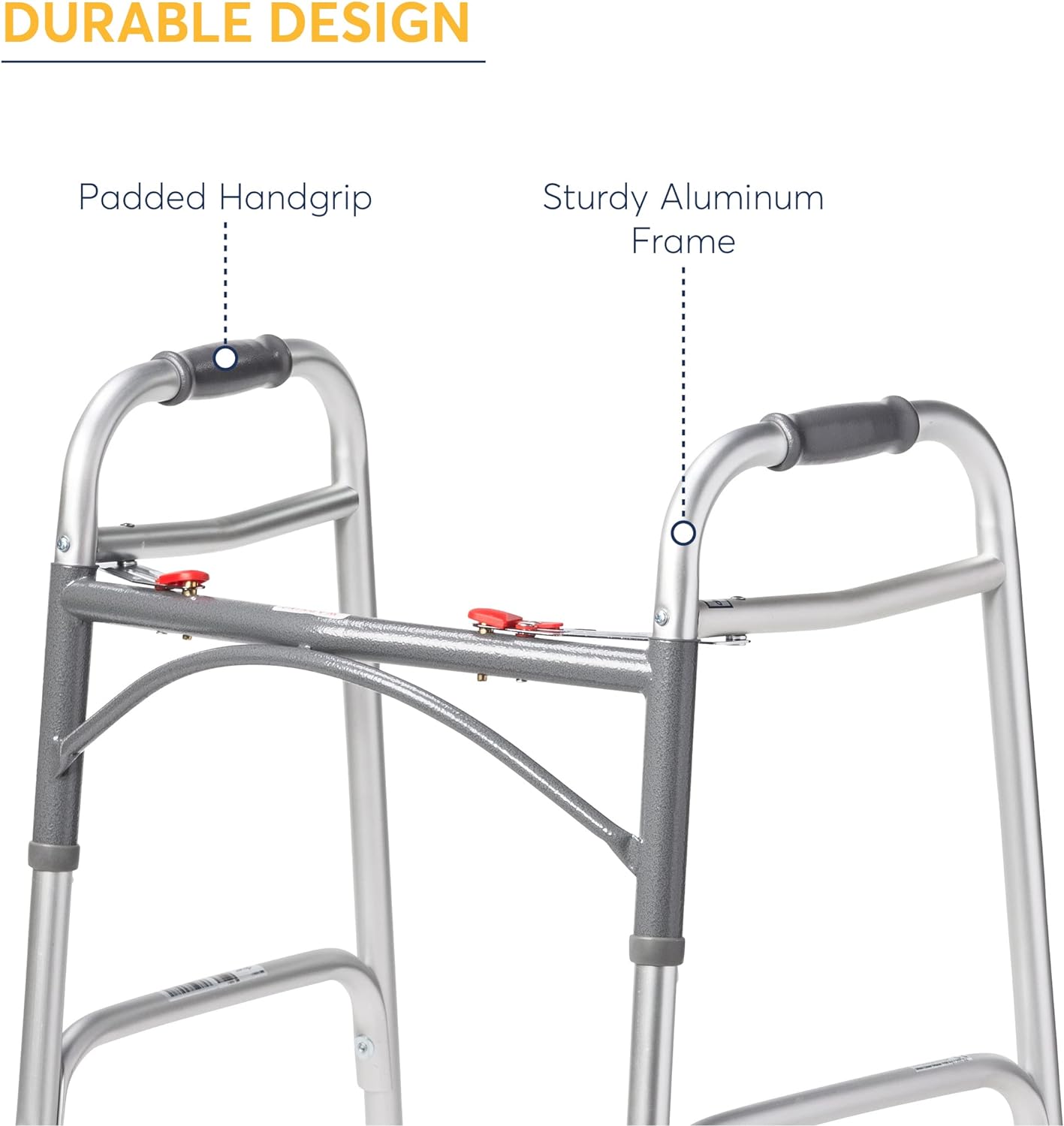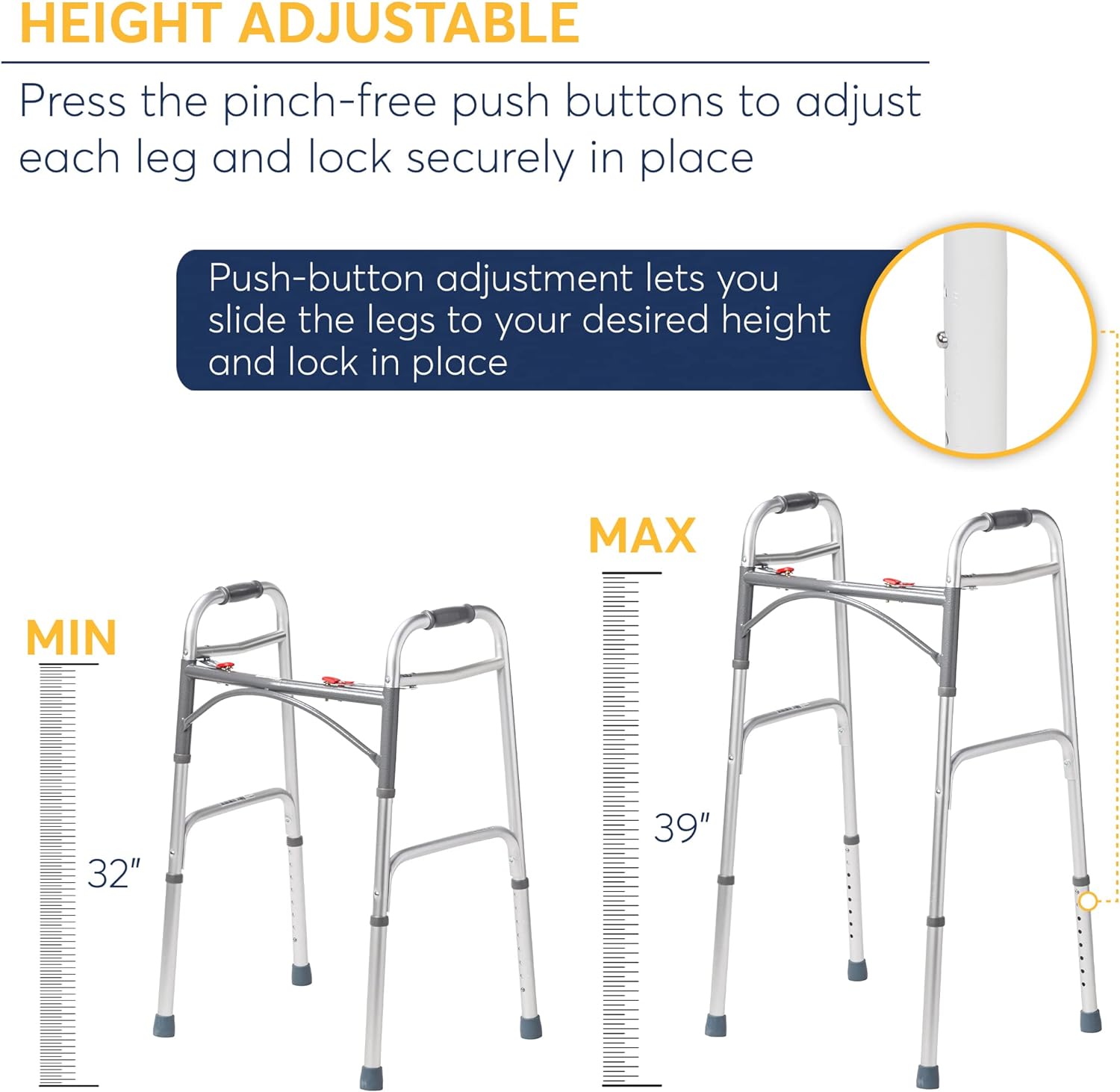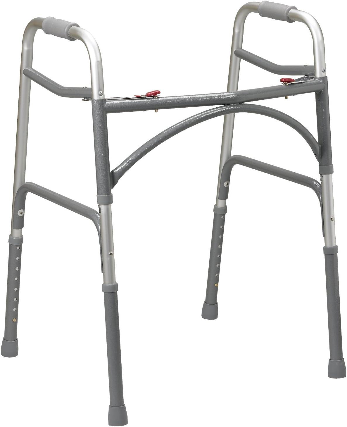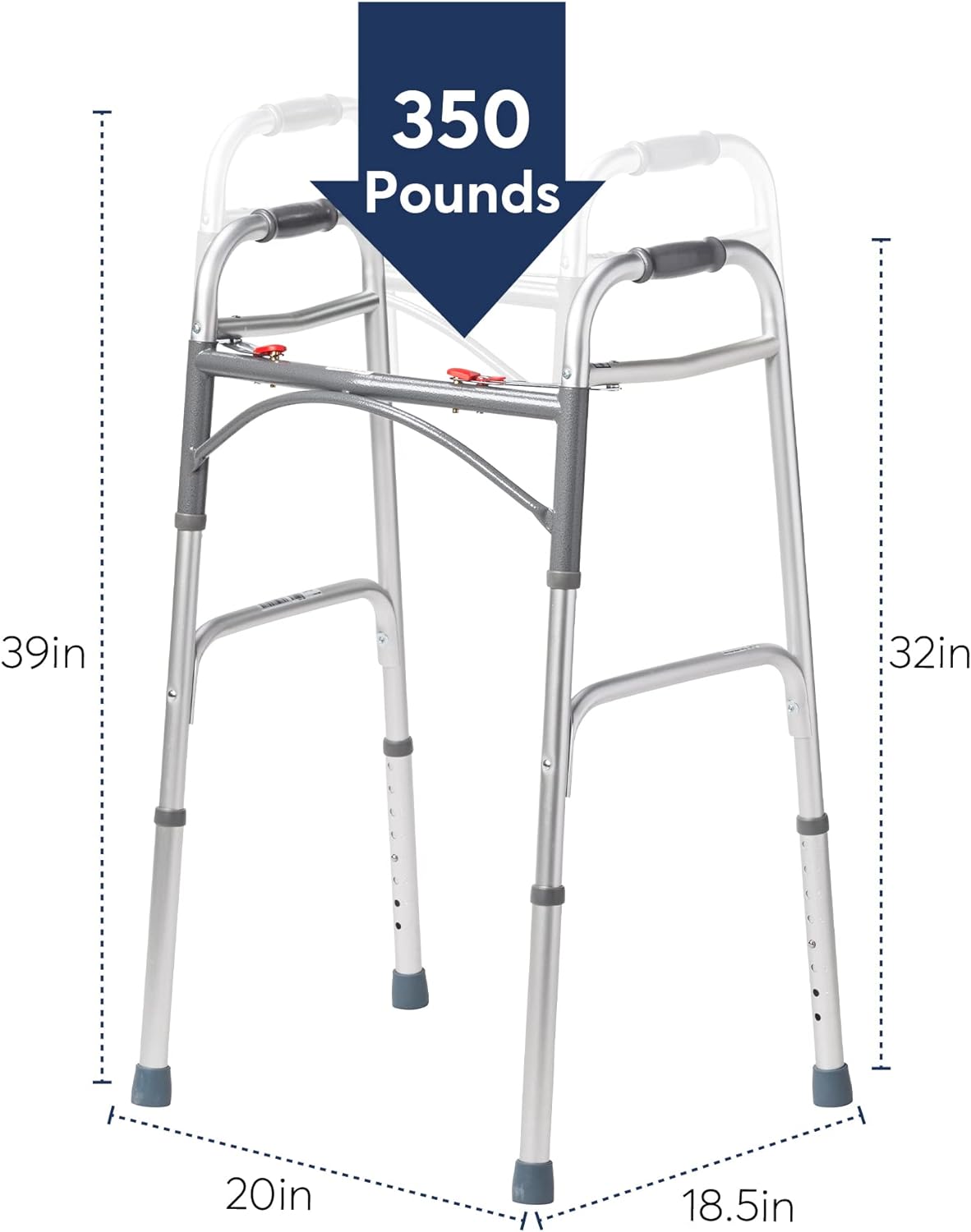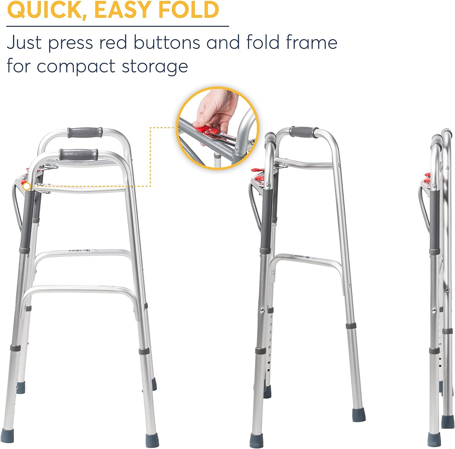 Drive Medical Deluxe 2-Button Folding Walker, Lightweight Walkers for Seniors and Adults, Medical Walker, Bariatric Walker (Up to 350 Pounds), Standard, Silver