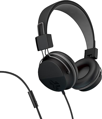 JLab Neon Folding On-Ear Headphones, Black, Wired Headphones, Tangle Free Cord, Noise Isolation, 40mm Neodymium Drivers, C3 Sound (Crystal Clear Clarity)