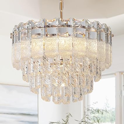 Gold Crystal Chandelier 5 Tiers 7-Light Modern Chandelier Lighting for Kitchen Island 16" K9 Crystal Round Light Fixtures for Dining Room Bedroom Foyer Entryway Hallway, E12