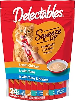 Hartz Delectables Squeeze Up Interactive Lickable Wet Cat Treats for Adult & Senior Cats, Tuna & Shrimp, 24 Count, 12 ounces