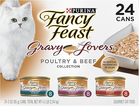 Purina Fancy Feast Gravy Lovers Poultry and Beef Grilled Gourmet Wet Cat Food Variety Pack - (Pack of 24) 3 oz. Cans