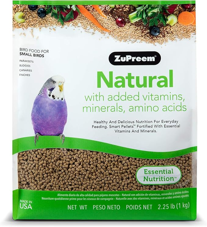 ZuPreem Natural Bird Pellets, Daily Bird Food for Parakeet, Budgie, Parrotlet, Dove, Core Nutrition for Small Birds, Added Vitamins, Made in USA, Parakeet Food, Budgie Food (S, 2.25 lb)