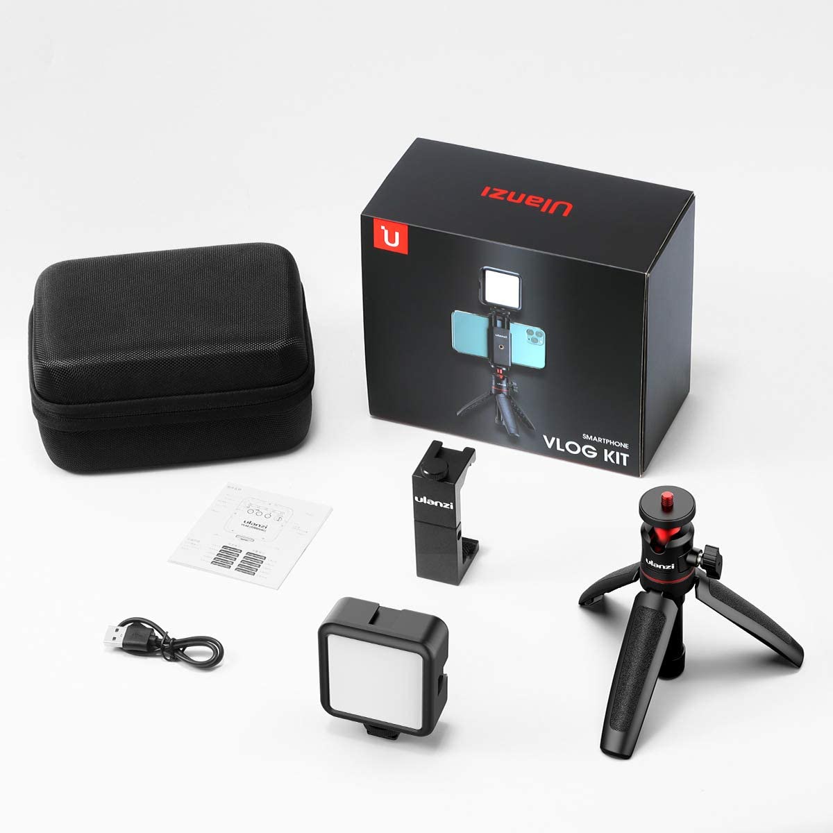 ULANZI Smartphone Vlogging Kit with Adjustable Handle Grip, Mini Tripod, Dimmable LED Light - YouTube, TIK Tok, Vlogging Equipment for iPhone/Android Smartphone Video Kit (ST-02S)