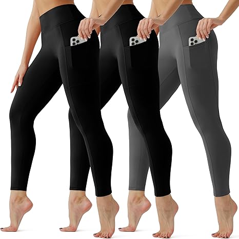 3 Pack Leggings for Women with pockets High Waisted Tummy Control Soft Yoga Pants Workout Reg & Plus Size